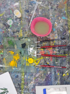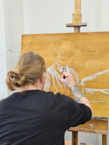 Die Malwerkstatt besteht aus drei miteinander verbundenen, unterschiedlich großen Räumen, einem ca. 100 qm und einem ca. 40 qm großen Raum, für malerische Aktivitäten, einem Raum für Geräte und Kunstliteratur. Alle Räume zeichnen sich durch gute Lichtverhältnisse mit großen, hohen Fenstern und guter Beleuchtung aus. Die Malwerkstatt eignet sich sowohl für individuelles Arbeiten, als auch für Gruppenaktivitäten. Sie bietet ebenso einen ausgezeichneten Rahmen für Seminare und Workshops.